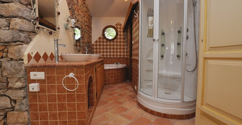 Dans la bâtisse, deux chambres doubles, un WC indépendant, une grande salle de bain avec baignoire et douche