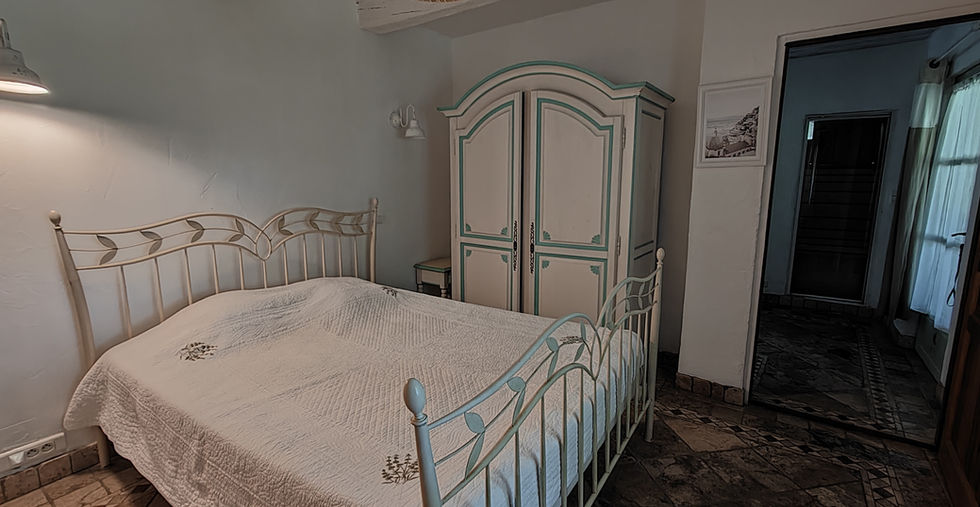 A l'étage inférieur, une chambre double avec salle de bain et lit simple d'appoint + WC indépendant
